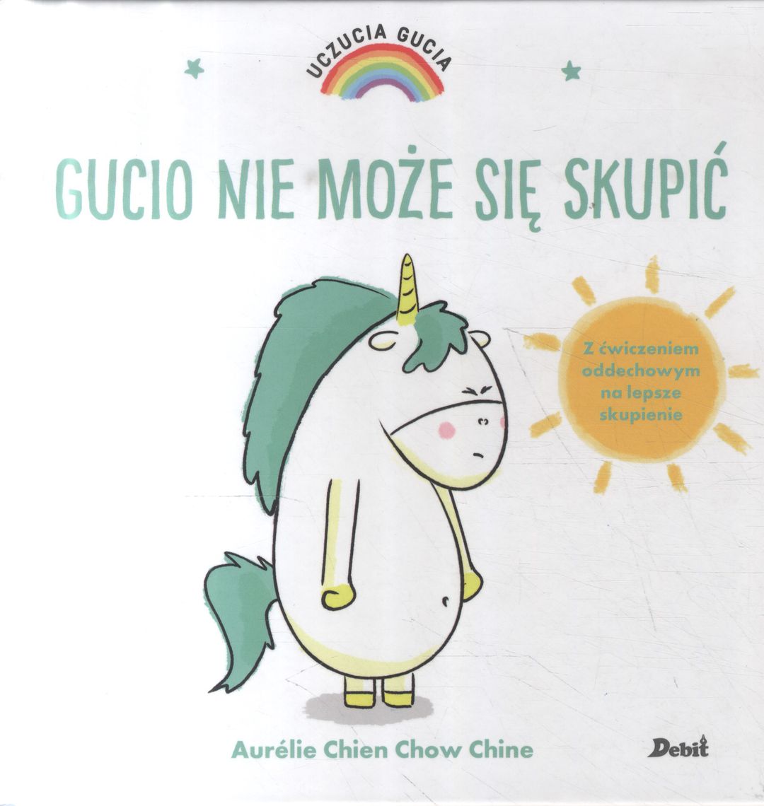 Gucio to mały jednorożec taki jak wszystkie. Albo prawie… Jego tęczowa grzywa zmienia kolor zależnie od tego, co Gucio odczuwa. Dziś Gucio nie może się skupić. Jego myśli cały czas gdzieś błądzą i trochę go to irytuje. Zobacz, w jaki sposób odzyska dobry humor. Seria historyjek, które uczą nazywania emocji i panowania nad nimi. W każdej książeczce opisano jedno uczucie. Na końcu historyjki znajdują się bardzo proste ćwiczenia, które pomogą dziecku wyciszyć się i zapanować nad emocjami.