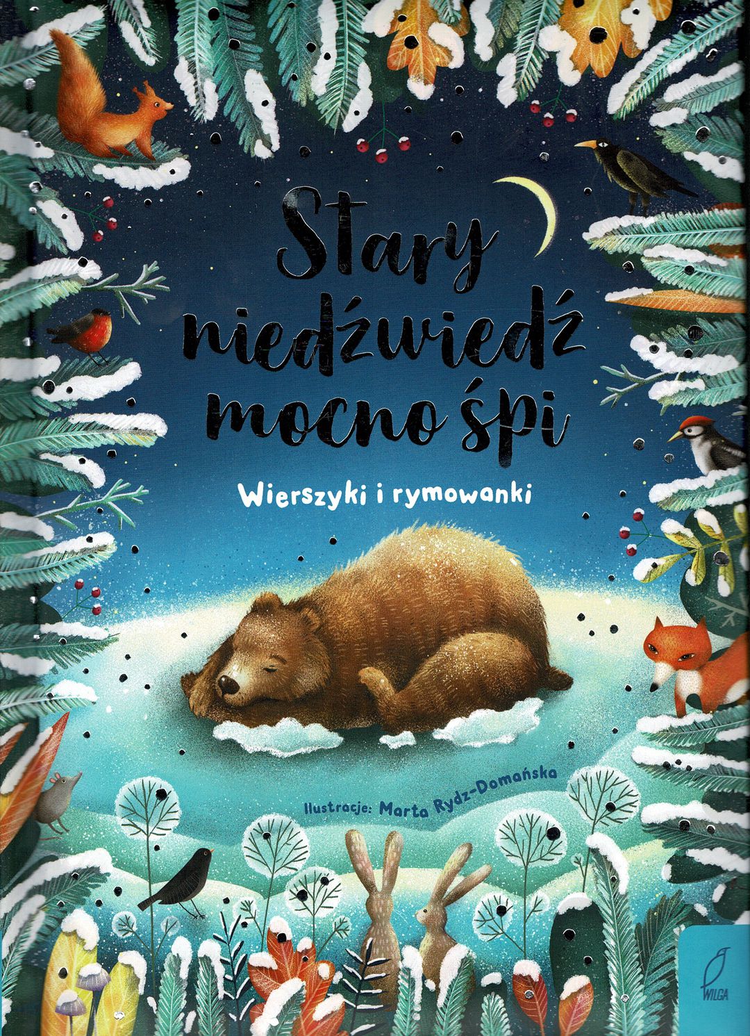 Stary niedźwiedź mocno śpi : wierszyki i rymowanki / ilustracje: Marta Rydz-Domańska. - Wydanie I. - Warszawa : Wilga, 2021. - 123, [5] stron : ilustracje ; 24 cm.