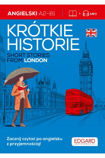 Zacznij czytać po angielsku z przyjemnością! Już od poziomu A2! Uczysz się angielskiego? Masz już opanowane podstawy i jesteś na dobrej drodze do poziomu średnio zaawansowanego? Chcesz zanurzyć się w lekturze książki po angielsku i poczuć przyjemność czytania? Oto wymarzona książka po angielsku na start – idealna dla wszystkich znających podstawy języka, którzy chcą uczyć się inaczej niż do tej pory, bo na luzie i z przyjemnością. Jeśli: jeszcze nie udało ci się przeczytać dłuższej książki po angielsku, rozumiesz już trochę słówek i znasz podstawy gramatyki, ale nie masz pewności co do wymowy, szybko się zniechęcasz do monotonnych podręczników, szukasz sposobu, by nauka angielskiego była wciągającą i przyjemna, chcesz osłuchać się z językiem angielskim, potrzebujesz materiałów, które ci to umożliwią. Krótko mówiąc, potrzebujesz Angielski Krótkie historie. Short stories from London. W Angielski Krótkie historie. Short stories from London znajdziesz aż 12 krótkich i wciągających opowiadań, którym towarzyszą jakościowe nagrania czytane przez native speakera, praktyczne tłumaczenia słówek na marginesach oraz zestaw ćwiczeń. Teraz możesz otoczyć się językiem angielskim na twoich warunkach – słuchaj, czytaj i ćwicz w dowolnej konfiguracji. Jak to działa? Możesz puścić nagranie opowiadania po angielsku w tle i osłuchiwać się z językiem. A następnie, kiedy masz wolną chwilę, usiądź wygodnie i zacznij śledzić tekst, słuchając nagrań lub po prostu przeczytaj opowiadanie. Wolisz odwrotną kolejność – najpierw czytanie, a dopiero później słuchanie? Świetny pomysł! To twój czas z angielskim. Przeczytane, wysłuchane i jeszcze ci mało? Pora na angażujący trening. Sprawdź się, wykonując różnorodne ćwiczenia i utrwal poznane słownictwo. Dzięki wciągającej fabule oraz żywemu językowi poznasz powszechnie używane kolokwializmy i struktury gramatyczne w kontekście, opanujesz nowe słownictwo i kolokacje charakterystyczne dla naturalnego, współczesnego języka angielskiego i bez trudu zrozumiesz niuanse i różnice kulturowe. To co, czas na angielski? Z przyjemnością!