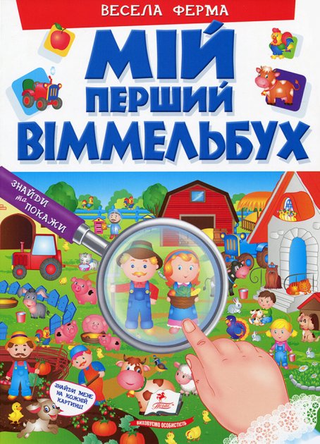 У книжці «Мій перший віммельбух. Весела ферма» розповідається про тварин — мешканців практично всіх європейських тваринницьких ферм. Причому розповідається в численних деталях, у найдрібніших подробицях, але при цьому немає жодного абзацу тексту. Річ у тім, що ілюстрації у книзі створено так, що про всіх героїв розповідають самі малюнки. З героями цієї книги можна позбирати яблука та груші в садочку, поласувати малиною та полуницею, погодувати маленьке козенятко капустою, покататися верхи на конях та порахувати гарних овечок, а ще разом з друзями або з мамою, татком, братиками, сестричками придумати історії за малюнками — хто веселіше і хто більше.