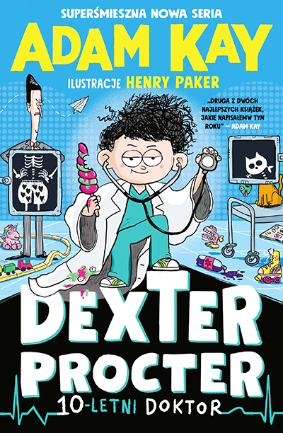 Od najmłodszych lat było wiadomo, że Dexter Procter jest inny niż wszyscy. Dexter zaczął mówić już po czterech sekundach od swoich narodzin. W wieku trzech lat miał za sobą już 87 zdanych matur na poziomie rozszerzonym – od języka afrikaans aż po zoologię. Jak dziesięciolatek rozpoczął pracę na stanowisku pediatry w szpitalu Lilydale. Mimo kochającej (choć czasem lekko irytującej) rodziny oraz dwojga dobrych przyjaciół (Rupi oraz Ottona) Dexter zawsze miał problem z wpasowaniem się w środowisko. Zmaga się też ze swoim śmiertelnym wrogiem (doktorem Drakiem) i dość poważnym incydentem w szkole (wszyscy nauczyciele cierpią na paskudny przypadek biegunki) – czy Dexterowi uda się zachować posadę, uratować szkołę i odnaleźć swoje miejsce? (Spoiler: tak!). Oto rozśmieszająca do łez historia o najmłodszym lekarzu na świecie napisana przez znanego i lubianego Adama Kaya i ozdobiona niezwykłymi ilustracjami Henry’ego Pakera! [wydawca]