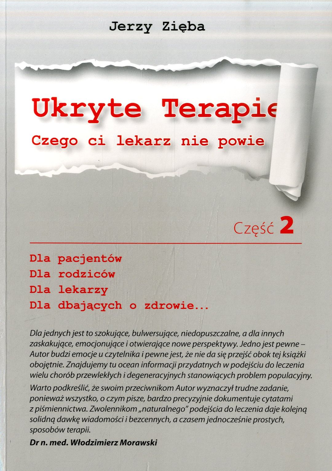 Jerzy Zięba od ponad 20 lat zajmuje się naturoterapią, szczególnie w odniesieniu do naturalnych metod leczenia i zapobiegania chorobom przewlekłym i nowotworom. Pierwsza część Ukrytych Terapii stała się bestsellerem w latach 2014-2015 i jej sprzedaż osiągnęła milionowy nakład. Ujawnienie wielu skrywanych faktów w medycynie spowodowało ogromne zainteresowanie społeczeństwa polskiego. Autor przeprowadził serie wykładów i seminariów w Polsce i za granicą, spotykając się z tysiącami osób chorych i z lekarzami, którzy wyrazili chęć zgłębiania propagowanej przez niego wiedzy. Część druga Ukrytych Terapii jest kontynuacją tego dzieła. Ze względu na ciągle szerzącą się dezinformacje odnośnie tłuszczów zwierzęcych i choroby wieńcowej serca, w drugiej części "Ukrytych terapii" wyjaśniam to znacznie dokładniej, wyjawiając kłamstwa jakie temu zagadnieniu towarzyszą od dziesiątek lat. Okłamywanie społeczeństwa jak również lekarzy w sprawie cholesterolu wydaje się nie mieć granic. Temat ten został potraktowany również znacznie szerzej szczególnie, że przemysł farmaceutyczny w sposób perfekcyjny oszukał lekarzy w sprawach cholesterolu. Lekarze zupełnie nieświadomie dopuszczają się absolutnie skandalicznych praktyk dotyczących jego obniżania. Książka opisuje w jaki sposób oszukano lekarzy jak i pacjentów. Największym problemem jaki przebijał się bezustannie w komentarzach czy rozmowach bezpośrednich były oczywiście choroby nowotworowe. W tych wszystkich opisach wstrząsające było jedno: przerażający brak skuteczności medycyny akademickiej w leczeniu tej choroby. Lekarze i pacjenci znajdą w książce szczegółowe opisy metod czy substancji, dzięki którym człowieka chorego na nowotwór można leczyć znacznie bardziej efektywnie, bezpieczniej i taniej. Opisywane substancje czy też metody leczenia choroby nowotworowej, co skrzętnie ukrywane przed pacjentami, jak i środowiskiem medycznym. W rozdziale o szczepionkach ujawnione są fakty, o których opinii publicznej się nie zawiadamia. Fakty te, bezsprzecznie wskazują na to, że lekarze jak i rodzice dzieci zostali perfidnie oszukani. Książka również opisuje skandaliczne, a jednocześnie nie ujawniane społeczeństwu fakty dotyczące systemu zdrowia, które znajdują się na granicy przestępstwa kryminalnego. Książka pokazuje także sposób rozwiązania wielu problemów dotyczących leczenia pacjentów przewlekle chorych. - Jerzy Zięba [lubimyczytac.pl]