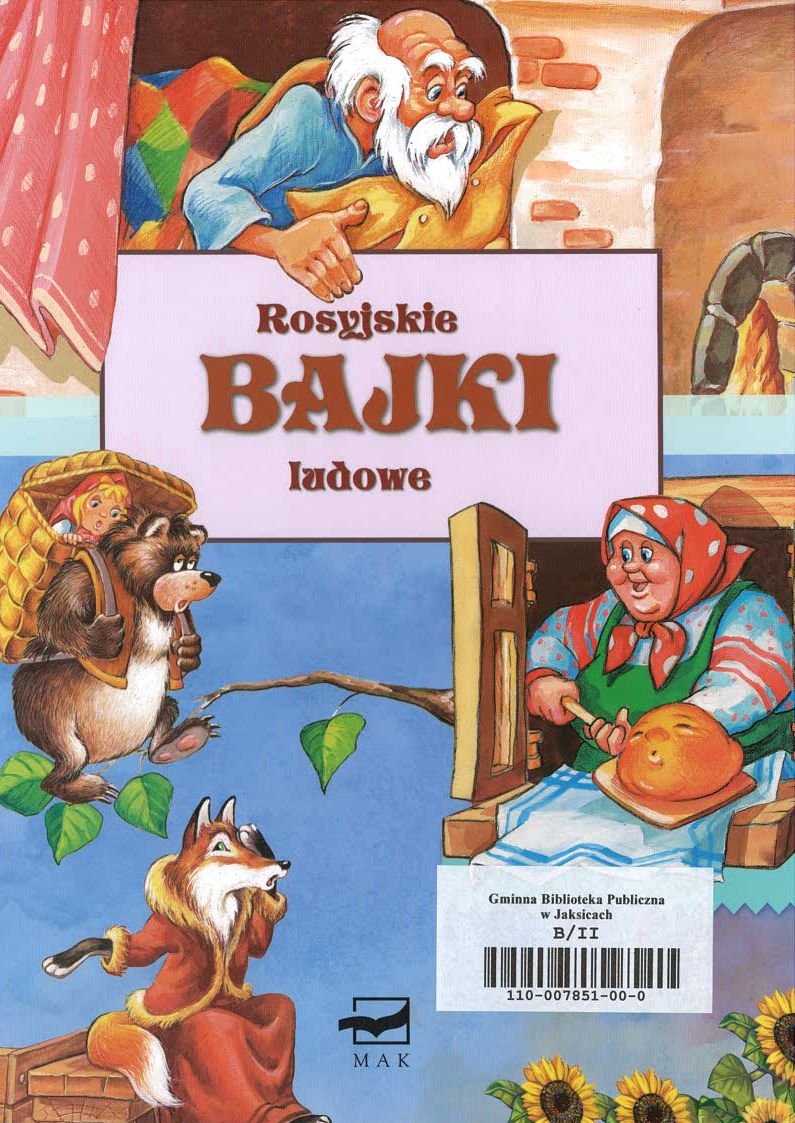 To zbior najpiekniejszych i najbardziej znanych bajek rosyjskich. Dzieci beda mogly przeczytac w nim historie o bochenku, ktory wyruszyl w swiat, o wilku i kozletach w opracowaniu A. Tolstoja. Mozna tu znalezc opowiesci pelne magii, humoru, a czesto glebokich prawd zyciowych.