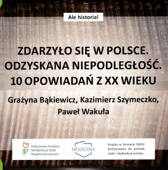 "Odzyskana niepodległość. 10 opowiadań z XX wieku" to piąta książka z serii "Zdarzyło się w Polsce". Ostatni tom z tego cyklu ukazuje się w setną rocznicę odzyskania przez Polskę niepodległości i poświęcony jest niezwykle burzliwemu okresowi w historii naszej ojczyzny. Współcześni autorzy książek dla dzieci i młodzieży, pasjonaci historii, przedstawili w nim II Rzeczpospolitą, okupację hitlerowską i PRL widziane oczami naszych przodków: powstańców śląskich, uczestników bitwy warszawskiej, żołnierzy Armii Krajowej, cywilów deportowanych na nieludzką ziemię i repatriantów zza Buga. Za ich sprawą czytelnik stanie się świadkiem zamachu na prezydenta Gabriela Narutowicza i przewrotu majowego, przeniesie się do bombardowanego przez Niemców Wielunia i płonącego warszawskiego getta. Będzie towarzyszyć tym, którzy do wolnej Polski szli u boku generała Andersa, i tym, którzy podążali do niej razem z generałem Berlingiem, a także tym, którzy walczyli o nią podczas strajków robotniczych w Poznaniu, Radomiu i Gdańsku.