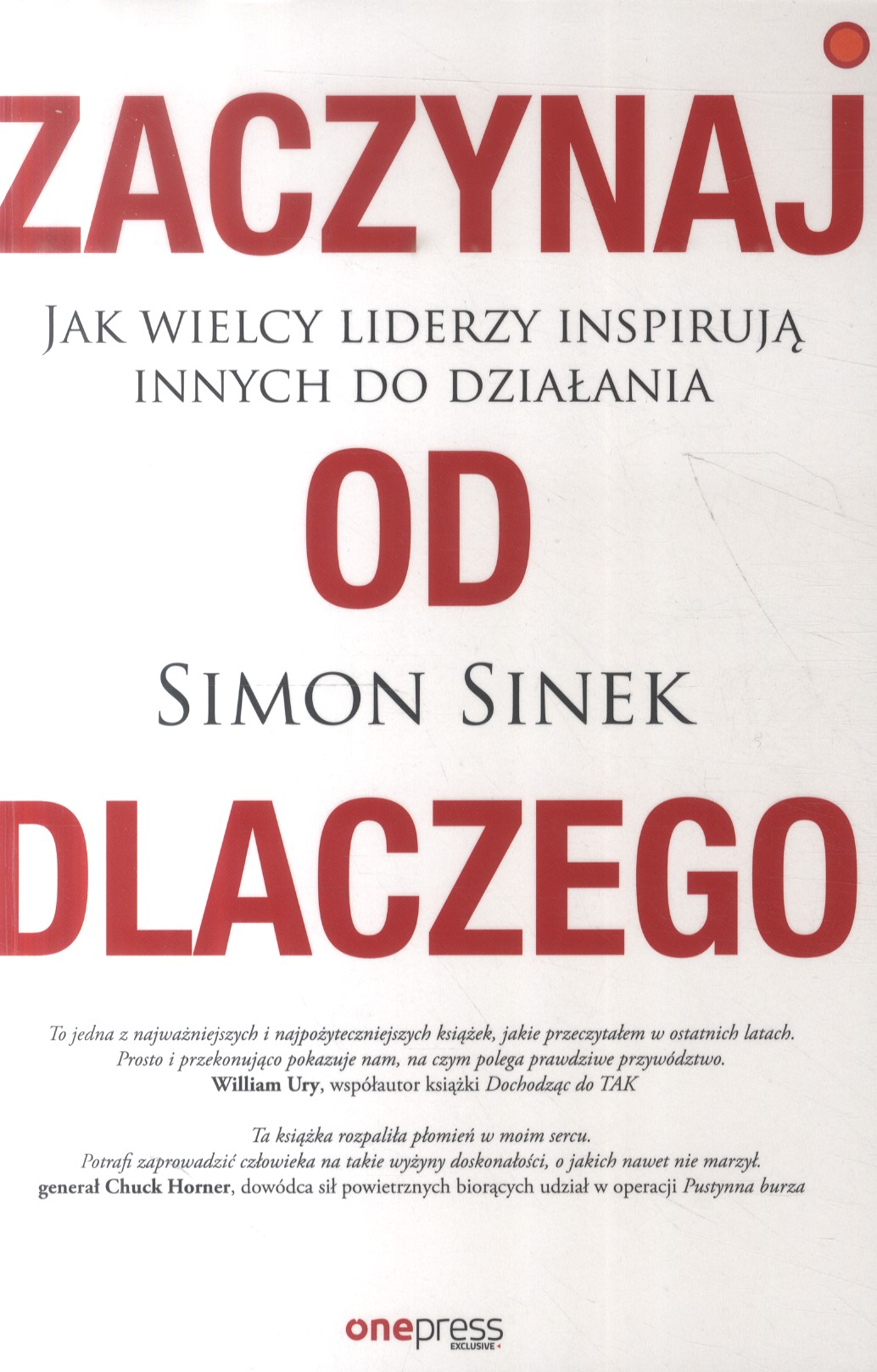 Każdy człowiek i każda organizacja mogą wyjaśnić, CO robią. Niektórzy z nas potrafią pokazać, CZYM różnią się od innych. Jednak tylko nieliczni są w stanie jasno wyartykułować, DLACZEGO robią to, co robią. DLACZEGO nie ma nic wspólnego z finansami i zyskami. DLACZEGO jest tym, co inspiruje Ciebie i Twoje otoczenie. Otwórz tę książkę i odnajdź samą kwintesencję inspiracji. Przewróć kilka stron i poznaj prosty wzór, sposób myślenia, działania i komunikowania się, dzięki któremu przywódcy są w stanie skutecznie zainspirować swoje otoczenie. Wczytaj się w historie Martina Luthera Kinga juniora czy Steve'a Jobsa i przekonaj się, że wszyscy liderzy, którzy kogokolwiek inspirują, myślą, działają i komunikują się z innymi z pominięciem ogólnodostępnych schematów. Każdy z nas może zdobyć tę umiejętność. Przy odrobinie dyscypliny każdy lider lub organizacja mogą skutecznie oddziaływać na innych. Przeczytaj wszystkie porywające opowieści i naucz się być skutecznym przywódcą. Przyciągnij do siebie ludzi i trwale zmień oblicze biznesu. Poznaj siłę DLACZEGO!